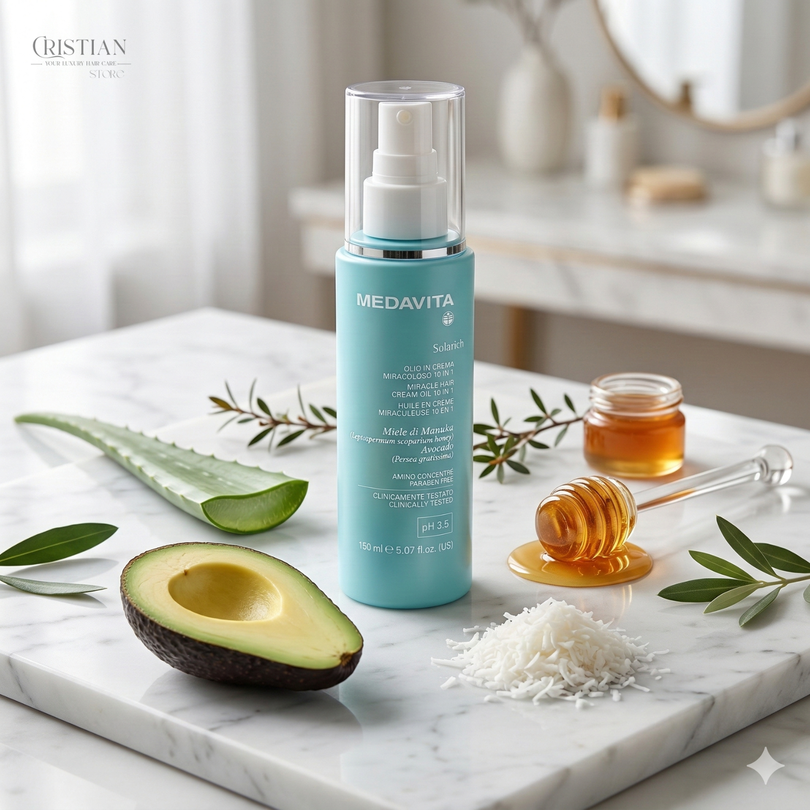 Ulei-Cremă 10 în 1 Medavita Solarich Miracle Hair Cream – Protecție UV & Hidratare cu Miere de Manuka (150ml)