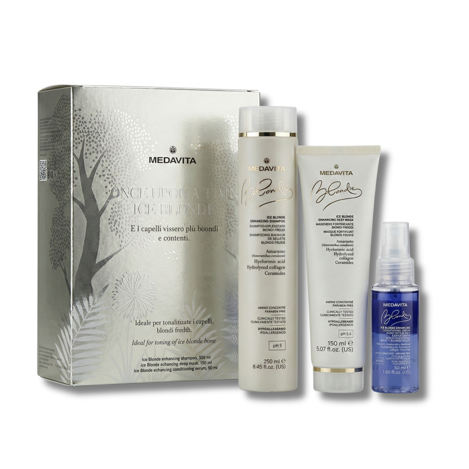 Medavita Set Blond Rece Medavita Ice Blonde – Șampon, Mască & Spray Bifazic Nuanțator (250/150/50ml)