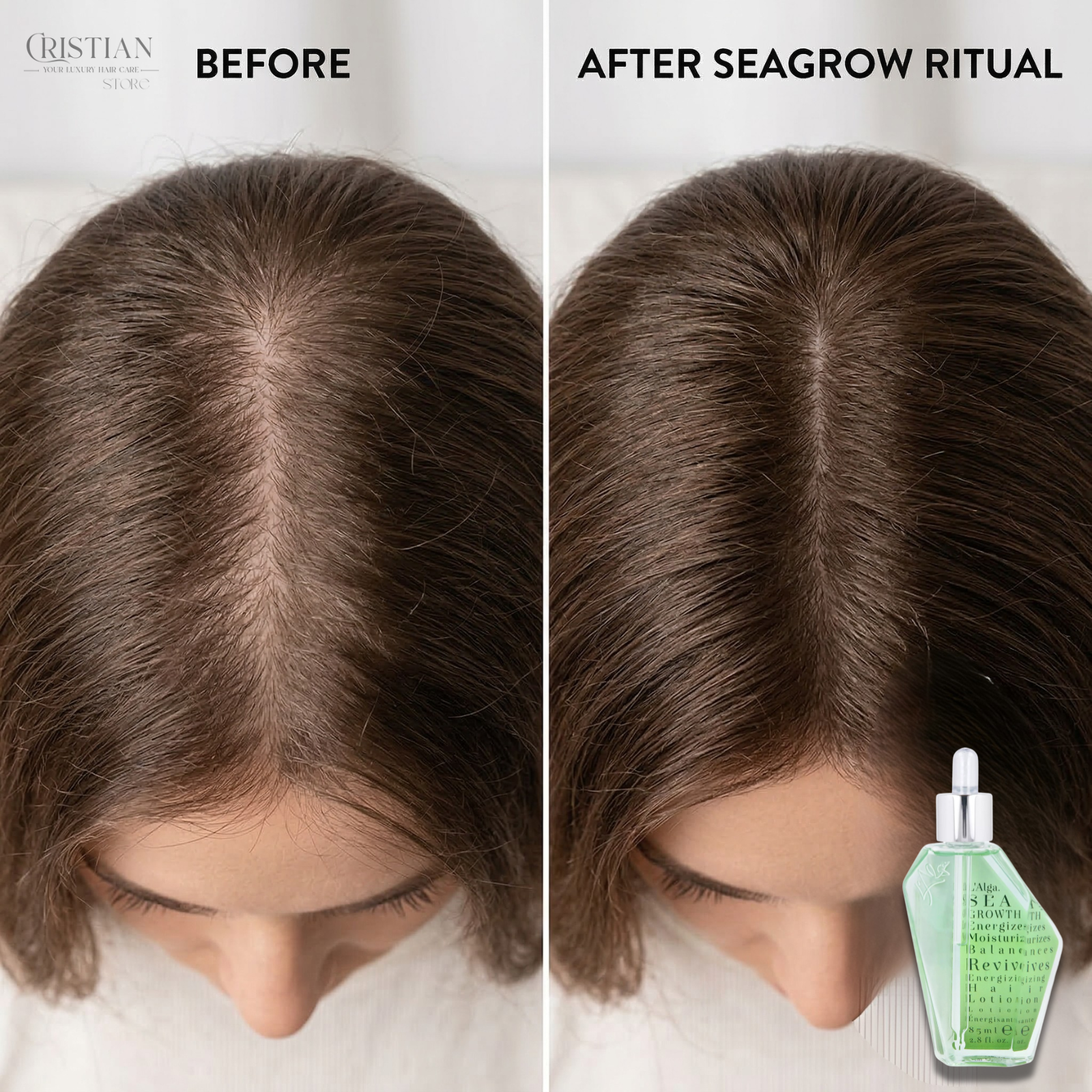 Textura sa apoasă și ultra-lejeră permite o absorbție instantanee, facilitând transportul ingredientelor active direct la sursă. Nu doar că stimulează creșterea, dar Seagrow echilibrează microbiomul scalpului, eliminând senzația de disconfort sau excesul de sebum care poate „sufoca” rădăcina.