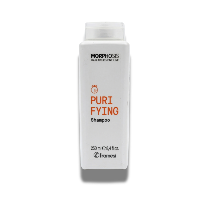 Adio mătreață, bun venit scalpului sănătos. Framesi Morphosis Purifying Shampoo este un șampon delicat conceput pentru a elimina scuamele și a calma scalpul iritat. Formula sa antiseptică și hidratantă, bazată pe ulei de arbore de ceai și extract de Chinotto, curăță în profunzime fără a agresa pielea, restabilind echilibrul natural și lăsând părul mătăsos, elastic și plin de prospețime.