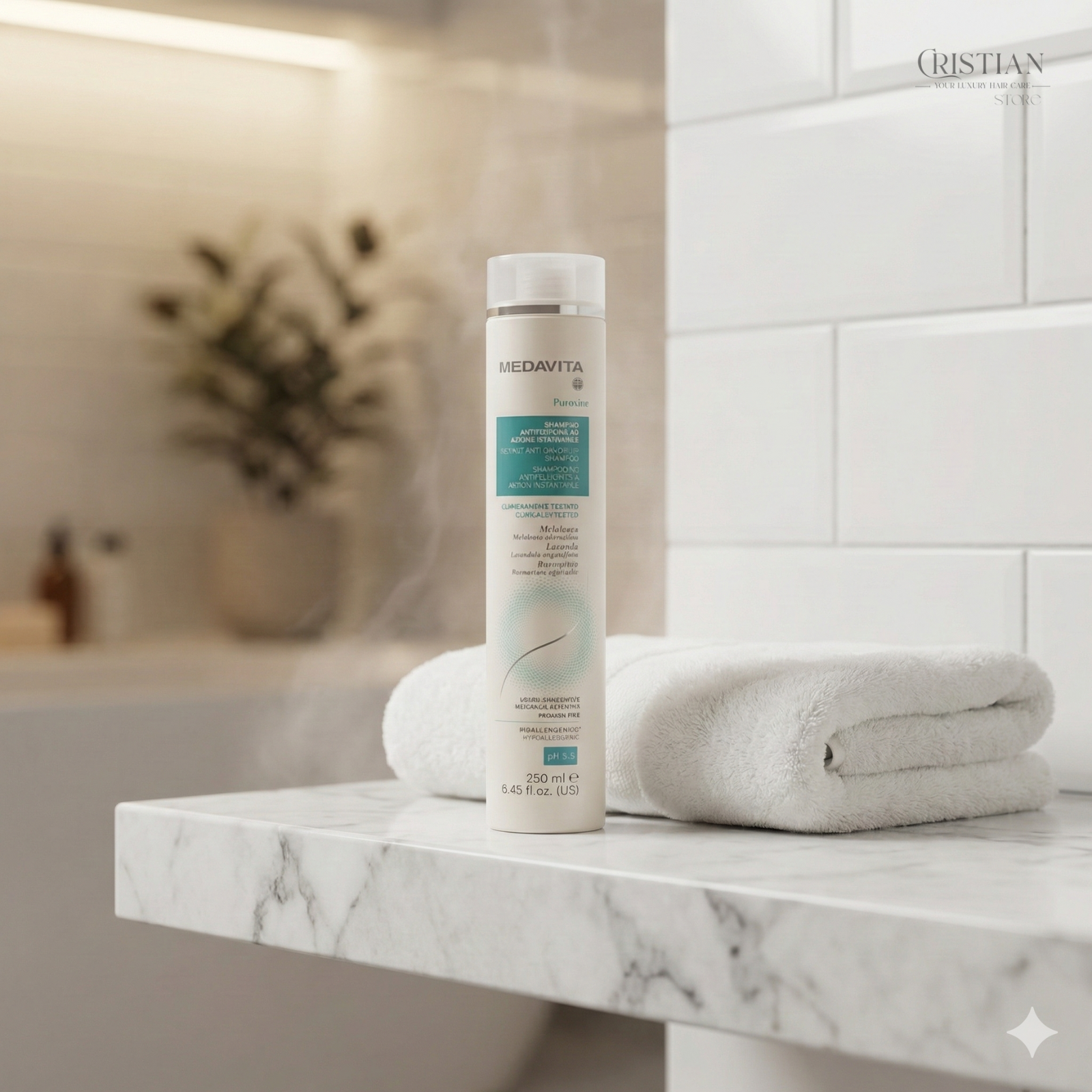 Adio mătreață, bun venit scalp sănătos. Medavita Puroxine Shampoo este o soluție de purificare profundă care elimină vizibil mătreața de la prima spălare și calmează mâncărimile, folosind puterea enzimelor exfoliante și a uleiului de Tea Tree.